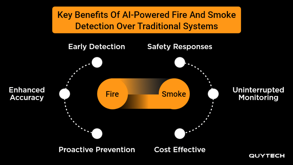 Now that you have a basic understanding of the concept and working of AI-based fire and smoke detection systems, let’s familiarize you with the benefits. Here are some key benefits that AI-Powered fire and smoke detection brings over traditional systems: